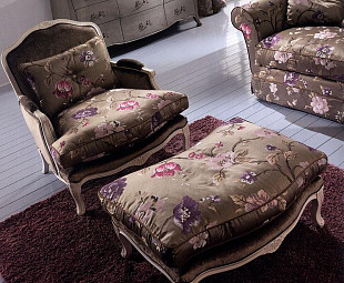 Кресло из коллекции PROVENZA, с элементами декора в виде резьбы. Изготовлено из массива бука. Используется полиуретановый наполнитель. На выбор клиента представлены варианты отделки и обивки, также есть возможность изготовить из любой предложенной ткани.