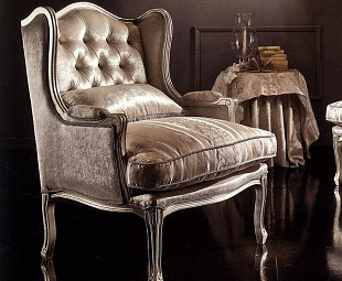 Кресло из классической коллекции с резными деревянными ножками. Материалом наполнителя является полиуретан. Изготовлено из массива бука. На выбор клиента представлены варианты  обивки, также есть возможность изготовить из любой предложенной.