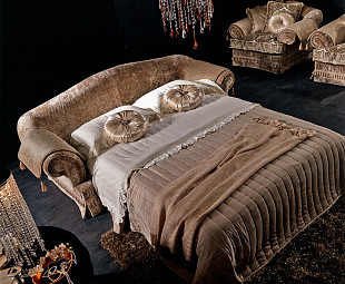 Прямой диван со спальным местом в классическом стиле. Структура дивана - тополь. В качестве наполнения использован полиуретан. Отделка и обивка могут быть представлены в нескольких вариантах, в том числе может быть использована ткань заказчика. Возможен вариант дивана-кровати.
