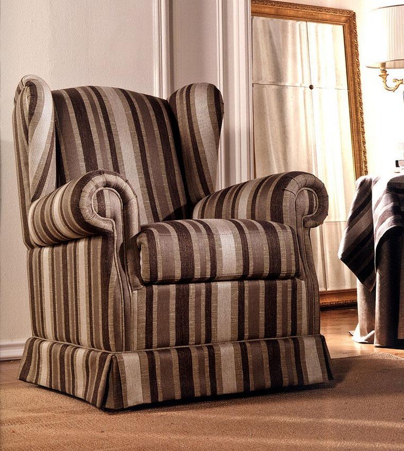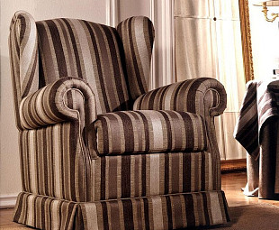 Кресло в классическом английском стиле. Структура кресла- тополь. В качестве наполнения использован полиуретан. Отделка и обивка могут быть представлены в нескольких вариантах, в том числе может быть выполнена из ткани заказчика. Можно заказать сменную обивку