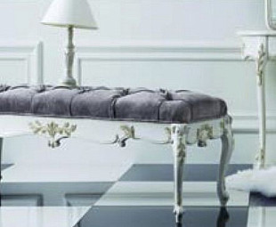 Банкетка прованс Веста изящно впишется в интерьер. Имеет изогнутые ножки и декоративное резное основание с позолотой отдельных элементов. Линии дизайна изысканные и невесомые, сидение обито мягкой тканью сиреневого оттенка с прострочкой. Изготовлена из массива бука белоснежного оттенка.