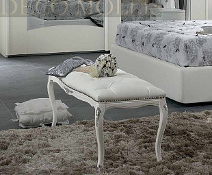 Белая банкетка Viola. Классическая банкетка воплощает в себе необычайную красоту и роскошь, элегантность и изысканность. Банкетка выполнена в обивке из эко кожи. Банкетка Viola выполнена в цвете белый с серебром. Сделана банкетка из массива и дополнен шпоном. Великолепная итальянская банкетка Viola дополнит интерьер самого роскошного дома.