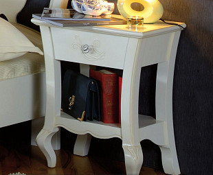 Белая прикроватная тумба Capri. Дизайн тумбы выполнен в классическом стиле, но адоптирован к современному образу жизни. Тумба напоминает настоящее произведение искусства в области мебели. Вся мебель коллекции Capri сделана из высококачественного массива дерева и дополнена шпоном. В обработке мебели используются специальные методы, которые придают ей исторический характер. Тумба выполнена в белом патинированном цвете. Элементы ручной работы, украшающие тумбу, являются результатом работы профессиональных дизайнеров и мастеров. По этой причине, каждый элемент тумбы является уникальным, что дает ощущение будто бы мебель выполнена по вашему индивидуальному заказу. Тумба коллекции Capri наполнит атмосферу вашего дома изысканностью, элегантностью и принадлежностью сразу к нескольким эпохам.