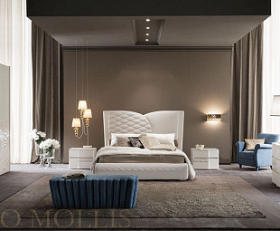 Элегантная спальня Chanel, выполненная в стиле модерн, в которой присутствует современный стиль и классические формы. Нежные светлые тона спальни прекрасно сочетаются с яркими элементами мягкой мебели, выполненные в синий ткани под замшу. Мебель и отделка сделана исключительно из высококачественных материалов. Нестандартная форма мебели подчеркивает и придает индивидуальность всему интерьеру спальни. В состав спальни входят кровати, шкафы, туалетный столик, тумба, комод, зеркало, банкетка, кресло и пуф. Роскошная итальянская спальня дополнит интерьер любого самого изысканного дома.
