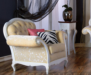 Белое кресло Capri. Дизайн кресла выполнен в классическом стиле, но адоптирован к современному образу жизни. Кресло напоминает настоящее произведение искусства в области мебели. Вся мебель коллекции Capri сделана из высококачественного массива дерева и дополнена шпоном. В обработке мебели используются специальные методы, которые придают ей исторический характер. Обивка кресла выполнена из ткани .Кресло выполнено в белом патинированном цвете. Элементы ручной работы, украшающие раму зеркала, являются результатом работы профессиональных дизайнеров и мастеров. По этой причине, каждый элемент кресла является уникальным, что дает ощущение будто бы мебель выполнена по вашему индивидуальному заказу. Кресло коллекции Capri наполнит атмосферу вашего дома изысканностью, элегантностью и принадлежностью сразу к нескольким эпохам.