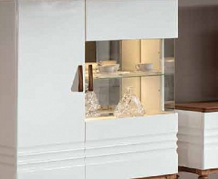 Белый буфет Torino Taranko выпускается польской фабрикой правостороннем и левостороннем вариантах. Для производства фасадных частей и корпуса берутся высококачественные ДСП и МДФ, покрытые шпоном. Столешница и ножки производятся из массива дуба. Боковая стеклянная часть модели смотрится очень оригинально и необычно.