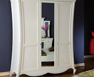 Белый шкаф с зеркалом Capri. Дизайн шкафа выполнен в классическом стиле, но адоптирован к современному образу жизни. Шкаф напоминает настоящее произведение искусства в области мебели. Вся мебель коллекции Capri сделана из высококачественного массива дерева и дополнена шпоном. В обработке мебели используются специальные методы, которые придают ей исторический характер. Шкаф выполнен в белом патинированном цвете. Элементы ручной работы, украшающие шкаф, являются результатом работы профессиональных дизайнеров и мастеров. По этой причине, каждый элемент шкафа является уникальным, что дает ощущение будто бы мебель выполнена по вашему индивидуальному заказу. Шкаф коллекции Capri наполнит атмосферу вашего дома изысканностью, элегантностью и принадлежностью сразу к нескольким эпохам.