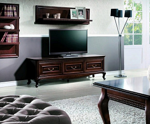Большая тумба под телевизор Verona Taranko производится польской фабрикой из массива дерева в двух цветах - braz и krem patina. Три выдвижных ящика, позволяют максимально использовать функциональные возможности тумбы, значительно увеличивая места для хранения вещей. Длина тумбочки предусматривает установку современных телевизоров больших размеров.