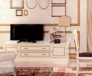 Большая тумба под ТВ Venezia. Большая тумба выполнена в классическом стиле, итальянскими мастерами и дизайнерами. Тумба сделана из высококачественного массива и шпона, в белом цвете.