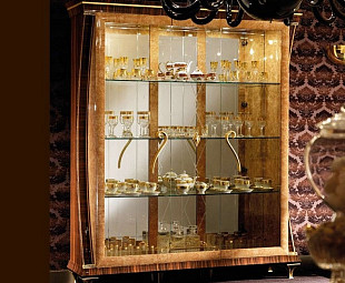 Большая витрина Rossini фабрики Arredo Classic. Витрина выполнена в классическом стиле лучшими итальянскими мастерами и дизайнерами. Витрина сделана из высококачественного МДФ и ДСП в цвете макассар, кофе с молоком, и украшена кристаллами Swarovski.