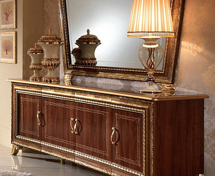 Большой буфет Giotto фабрики Arredo Classic. Буфет выполнен в классическом стиле, лучшими итальянскими мастерами и дизайнерами. Буфет сделан из высококачественного МДФ и тамбурата в цвете орех, и украшена элементами из сусального золота. Буфет имеет четыри двери.