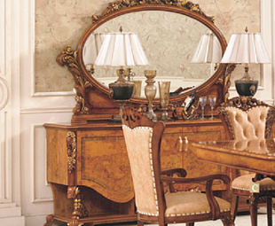 Большой комод с зеркалом в цвете орех коллекции Наполеон добавит комнате простора и уюта. Два вместительных ящика для хранения вещей закрыты рельефными дверцами. Подставка под зеркало, ножки комода и боковые панели украшены резьбой из цветов и листьев.
