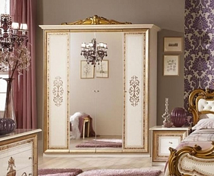 Четырех дверная модель с двумя зеркальными дверями гармонично дополнит интерьер спальни. Светлый оттенок удачно подчеркнет элементы обстановки и визуально расширит пространство.