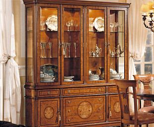 Шпон ясеня, самшита, ореха и палисандра, патина золото или серебро, лак.