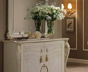 Буфет для столовой Tiziano фабрики Arredo Classic. Буфет сделан из высококачественного МДФ и ДСП. Буфет выполнен в цвете матовой слоновой кости с добавлением золотых элементов. Буфет имеет две двери.