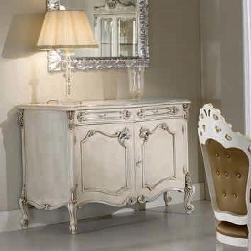 Буфет на изогнутых ножках выполнен в классическом стиле. Он оснащен двумя дверцами, а резные детали отделки подчеркивают уникальность модели.
