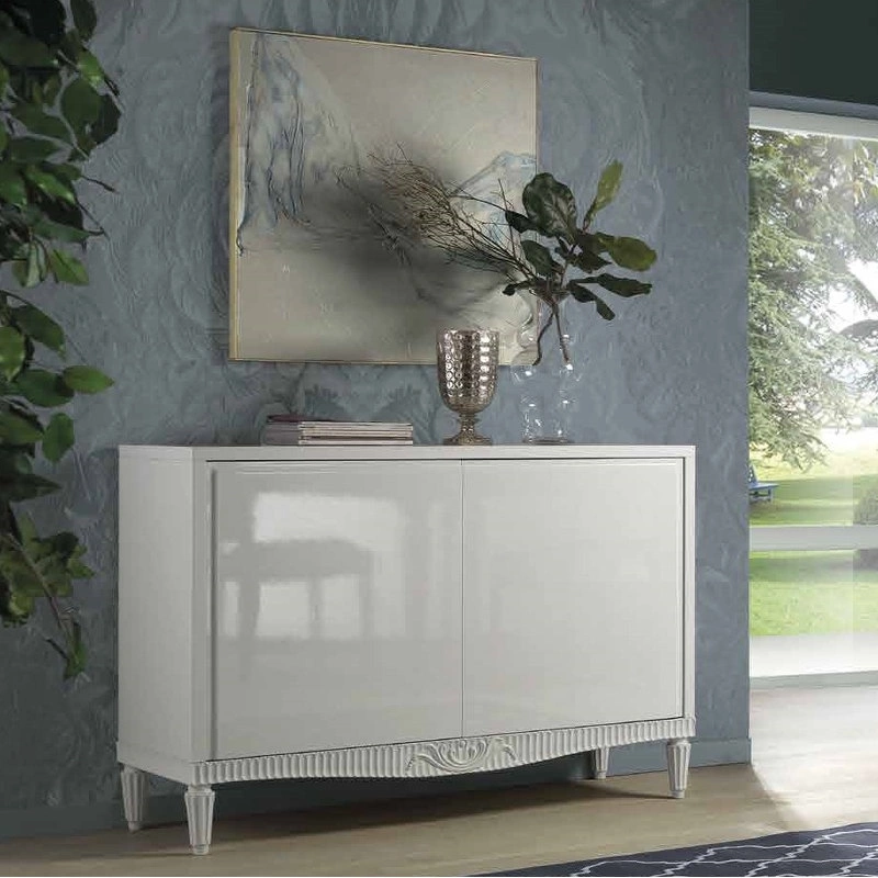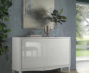 Буфет укомплектован двумя дверцами с системой открывания "push to open", внутри расположены деревянные полки.