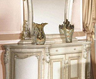 Буфет представлен в благородном цвете слоновая кость с легким патинированием, что придает ему изысканную строгость и ощущение старины.