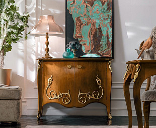 Буфет двустворчатый от фирмы GIULIA CASA орехового цвета идеально подойдет для вашей столовой. Он являет собой образец классического мебельного искусства. Комод имеет плавные очертания, благодаря закругленным углам и утонченным ножкам.