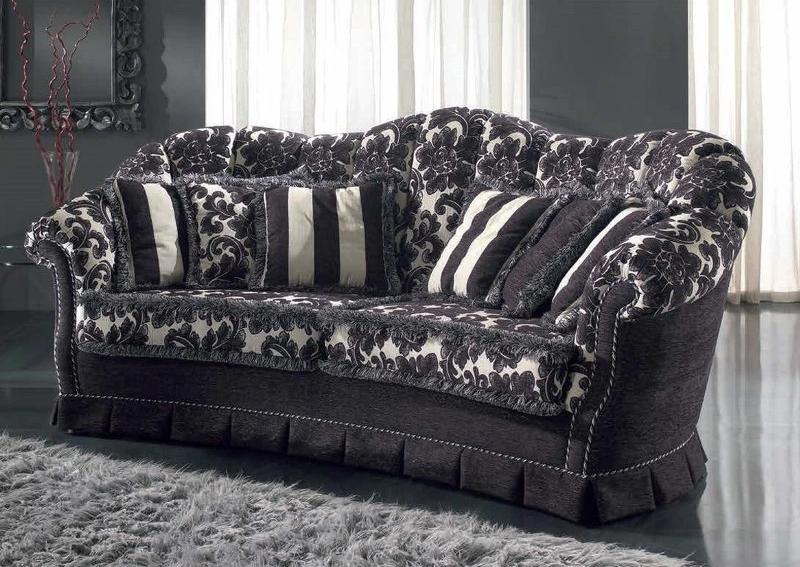 Двухместный диван в классическом стиле оформлен вертикальной стежкой и кантом. Основу скрывает "юбка".
