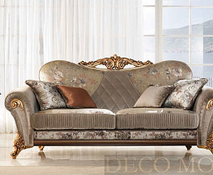 Диван итальянский трехместный, украшен резьбой, покрытой золотой фольгой. Вместительный, удобный и красивый, входит в комплект гостиной коллекции Sinfonia.