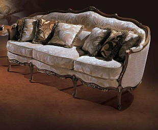 Мягкий, комфортный диван в классическом стиле для дорогой, богатой обстановки дома. Только плавные линии и грациозные изгибы характеризуют данную модель, создавая неповторимый, идеальный силуэт. Качественные ткани, ручная резьба, ценные породы дерева и благородные цвета делают данную модель настоящим произведением искусства. Периметр украшен красивыми объемными цветами, которые покрыты состаренным золотом и серебром. Для обивки и декора можно выбрать другие материалы и отделку.