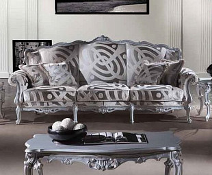 Трехместный итальянский диван в стиле "Барокко" будет прекрасным дополнением к оформлению роскошной, шикарно обставленной гостиной. Глубокие сиденья дарят комфорт и отдых. Красивая, дорогая ткань обивки блестящего серебряного цвета. Спинка и царги украшены ручной резьбой в виде уникального растительного орнамента. Мягкие подлокотники плавно изогнуты наружу. Невысокие ножки изгибаются в изящном завитке. Все материалы и декор могут быть подобраны индивидуально.