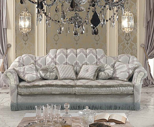 Элегантный трехместный диван Paris из коллекции La Belle Epoque представляет классический стиль характерными изгибами спинки и подлокотников, украшенных с внутренней стороны вертикальной стежкой. Каркас изготовлен из цельного дерева и обит дизайнерской тканью с ажурным вензельным принтом. В качестве набивки использован полиуретановый наполнитель. Основание скрыто кокетливой юбкой-бахромой.
