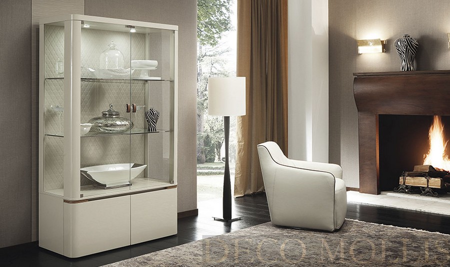 Витрина Grace фабрики Alf выполнена в стиле модерн, лучшими итальянскими мастерами и дизайнерами. Изготовлена из высококачественного МДФ в цвете слоновой кости. Две застекленные двери и боковые стенки обеспечивают обзор красивых предметов экспозиции. В нижней части расположены полки для посуды, закрытые двумя дверцами.