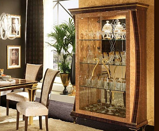 Двухдверная витрина Rossini фабрики Arredo Classic. Витрина выполнена в классическом стиле лучшими итальянскими мастерами и дизайнерами. Витрина сделана из высококачественного МДФ и ДСП в цвете макассар, кофе с молоком, и украшена кристаллами Swarovski. Витрина имеет две двери.