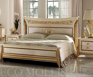 Двуспальная итальянская кровать 200 Melodia фабрики Arredo Classic, сделана из высококачественного МДФ в цвете слоновая кость с золотом. Имеет твердое изголовье.