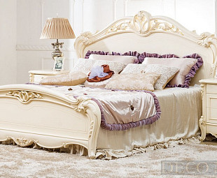 Кровать Катрин. Двуспальная кровать выполнена в классическом стиле и украшена ручной лепкой. Кровать имеет массивное жесткое изголовье. Кровать сделана из МДФ в матовом покрытии и в отделке молочно-белого цвета. Роскошная кровать дополнит интерьер вашей спальни.