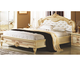 Двуспальная кровать с мягким изголовьем Дина производится из МДФ российской мебельной фабрикой. Элегантная светлая модель для большой просторной спальни. Высокая спинка, украшенная изящной резьбой, добавит нежный штрих в обстановку комнаты.