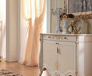Комод для гостиной от итальянских партнеров по изготовлению мебели. Комод имеет две дверцы под просторные места для хранения гостиных аксессуаров и два выдвижных ящика. Комод элит-класса выполнен в бежевом цвете из массива натурального дерева