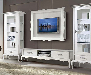 Роскошная итальянская гостиная выполнена в классическом стиле, где каждый элемент подчеркивает изысканность и уникальность композиции. Сделана мебель из массива в отделке из шпона вишни. Витрины оборудованы подсветкой и украшены высокохудожественной лепкой. Ручки выполнены в бронзовом цвете, а сама мебель в цвете вишня. В состав гостиной входят витрины, тумбы под ТВ, журнальные столики. Невероятно элегантная гостиная от итальянских производителей придаст вашему дому уют и шарм прошлых веков.