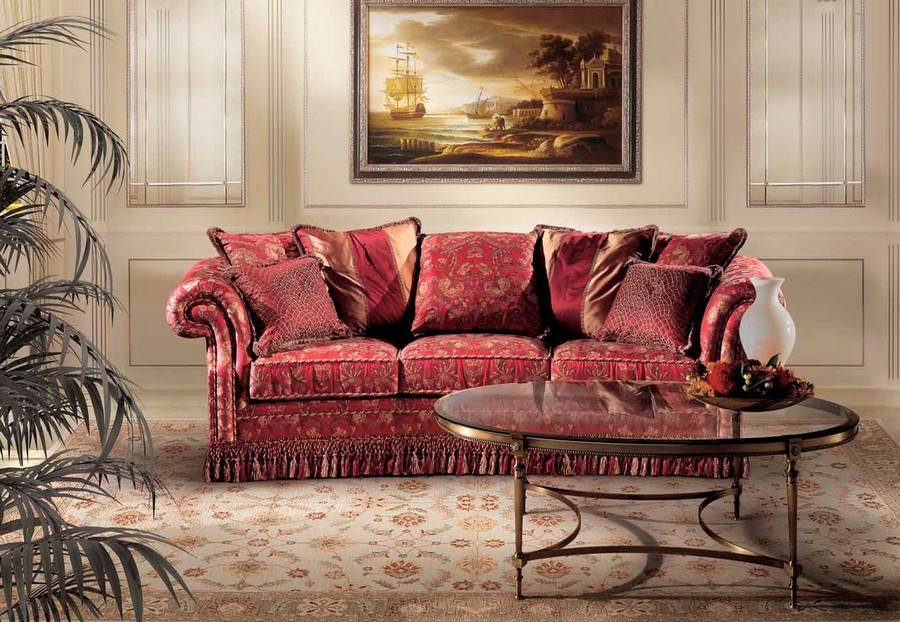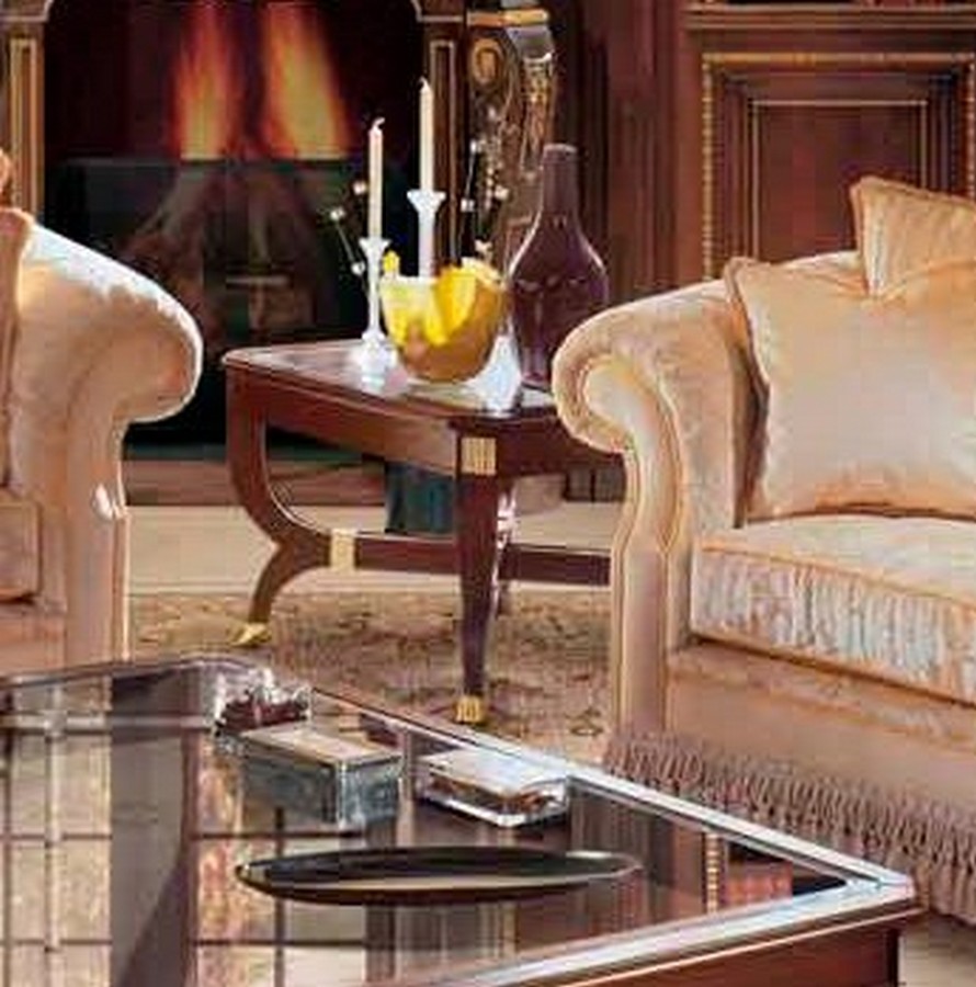 Очень красивый набор мягкой мебели в классическом стиле от известной фабрики Италии. Обивка выполнена из тканей Премиум-сегмента, которые вы можете подобрать на Ваш вкус из каталоге фабрики. Столики имеют стеклянную столешницу и резьбу ручной работы, которая покрыта сусальным золотом. Используются только ценные породы дерева. Идеально для дорогих, богато обставленных гостиных. Материалы и декор могут быть подобраны индивидуально.