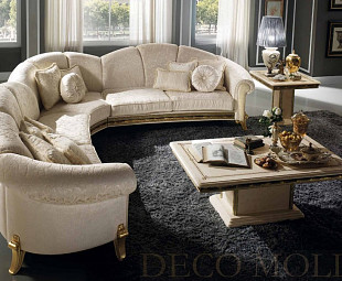 Итальянский угловой диван Raffaello фабрики Arredo Classic. Диван выполнен в классическом стиле лучшими итальянскими мастерами и дизайнерами. Диван сделан из высококачественного МДФ и тумбурата в обивке из ткани категории В.