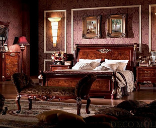 Кровать коллекции Сarpenter 223 классическая двуспальная с высоким прямоугольным изголовьем, удобна и практична, сделана из массива дерева в отделке цвета орех, с добавлением ручной резьбы.