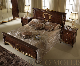 Классическая кровать 180 Donatello итальянского мебельного концерна Arredo Classic сделана из деревянного массива и современного высокотехнологичного композита – тамбурата. Благородная текстура натурального дерева роскошно подчеркивается резными накладками с нанесением сусальной позолоты. Высокая спинка украшена рисунком, карнизом-короной и прочими затейливыми элементами декора. Выпускается в нескольких размерах.