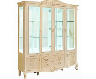 Витрина Сarpenter 236 white. Витрина выполнена в классическом стиле и имеет четыри застекленных двери, в нижней части два выдвижных ящика и две дверцы, что обеспечивает значительную вместительность. Изготовлена из массива дерева в отделке белого цвета. Стильная и вместительная - дополнит интерьер вашего дома.