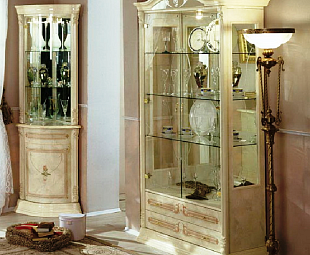 Классическая витрина Розмари производится из МДФ высокого качества. Выпускается в цвете беж, орех, махагон. Светлый оттенок мебели всегда делает атмосферу в комнате легкой и праздничной. Бежевый шкаф для посуды увеличивает это ощущение вдвойне. Тонкие боковые панели поддерживают стекла, но не мешают рассмотреть красивые коллекции расположенные внутри. Нижняя часть украшена искусным неброским рисунком, который гармонично вписан в дизайн модели.