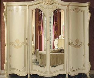 Классический четырехдверный шкаф с зеркалами Opera. Роскошный шкаф для спальни Opera сделан итальянскими мастерами и дизайнерами в классическом стиле, и выполнен в нежном цвете слоновой кости с добавлением позолоченной фольги, что придает помещению дополнительное визуальное пространство. Шкаф для спальни сделан из высококачественного массива и дополнен шпоном. Стильный и элегантный шкаф дополнит любой самый изысканный интерьер вашего дома.