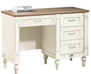Классический туалетный столик Florenzia выпускается в двух цветах «ваниль» и «кашемир патина» в сочетание с оттенком «дуб флоренция». В модели сделаны четыре выдвижных ящика, снабженные мягкими доводчиками.