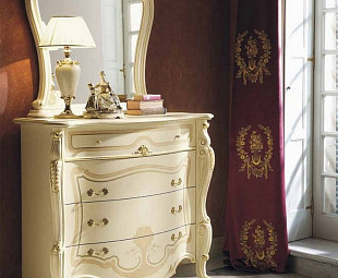 Классическое зеркало для комода Opera. Роскошное зеркало для спальни Opera сделано итальянскими мастерами и дизайнерами в классическом стиле, и выполнено в нежном цвете слоновой кости с добавлением позолоченной фольги, что придает помещению дополнительное визуальное пространство. Зеркало для спальни сделано из высококачественного массива и дополнено шпоном. Стильное и элегантное зеркало дополнит любой самый изысканный интерьер вашего дома.