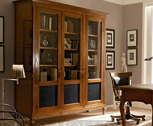 Книжный шкаф Капри – сдержанная классическая модель, элегантная в своей простоте и лаконичности. Правильные геометрические формы смягчены плавной линией нижнего края, фигурными ножками и металлическими декоративными ручками. Три стеклянные дверцы открывают на обозрение внутреннее пространство, разделенное полочками на функциональные зоны. Поверхность фасада патинирована, что вызывает ассоциации с «добрыми старыми временами» и делает интерьер уютнее.