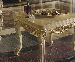 Кофейный столик для гостиной Opera. Роскошный столик для гостиной Opera сделан итальянскими мастерами и дизайнерами в классическом стиле, и выполнен в нежном цвете слоновой кости с добавлением позолоченной фольги, что придает помещению дополнительное визуальное пространство. Столик для гостиной сделан из высококачественного массива и дополнен шпоном. Стильный и элегантный столик дополнит любой самый изысканный интерьер вашего дома.