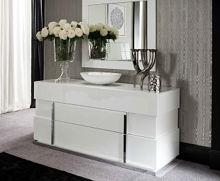 Комод белый в спальню широкий Canova с тремя ящиками отлично впишется в общий дизайн комнаты. Достаточно вместительный элемент спального гарнитура станет замечательным дополнением.