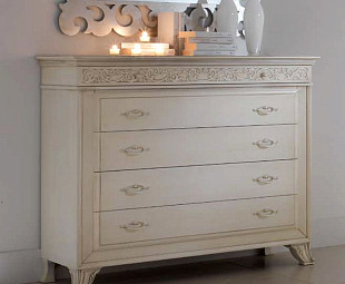 Большой комод для одежды Margot с классически прямым силуэтом и лаконичными формами обыгран итальянскими мастерами при помощи искусной резьбы, воплотившей чудесный цветочный орнамент для отделки фасада. Модель выполнена из массива ореха с сохранением его природной текстуры, оснащена четырьмя выдвижными ящиками и широкой ровной поверхностью, пригодной под расстановку на ней элементов декора, что непременно добавит комнате гармонии и уюта.