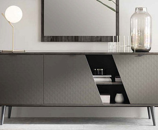 Комод для посуды Frida.– важнейший элемент при обустройстве обеденной зоны гостиной. Внутреннее пространство изделия с большим количеством полок и ящиков ориентировано на максимально комфортное размещение в нем столовых приборов. Минималистичный дизайн избавляет от ощущения тяжести, а отделка в технике «высокого глянца» придает буфету богатый, несколько ампирный вид .