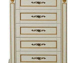 Комод для посуды в гостиную Leonardo, представляющий собой изящную классическую модель, является вместительным и функциональным участником ансамбля. Ваши сервизы и прочая утварь будут бережно хранимы в объемных распашных шкафчиках. Характерные для коллекции элементы декора – резные накладки золотистого цвета, геометрический рисунок на фасадах, красивые ручки интересной формы, обрамленные затейливым узором, – подчеркивают грациозность и благородную роскошь обстановки.